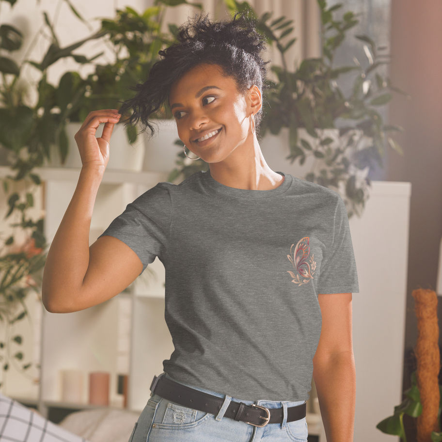 You've now found the staple t-shirt of your wardrobe. It's made of 100% ring-spun cotton and is soft and comfy. The double stitching on the neckline and sleeves add more durability to what is sure to be a favorite!